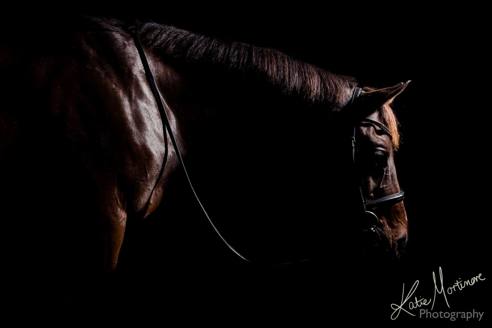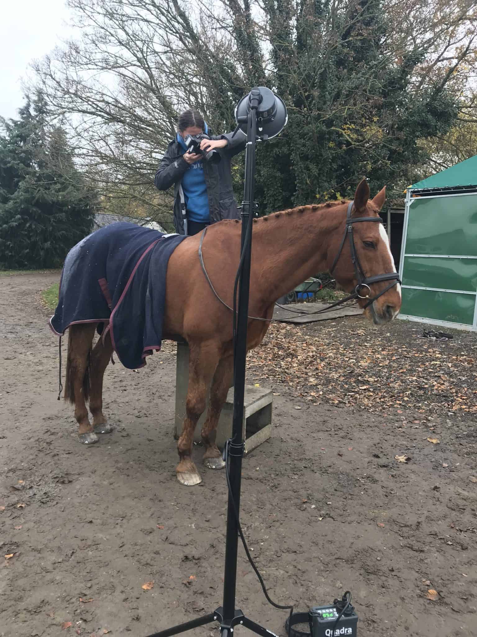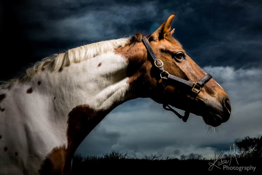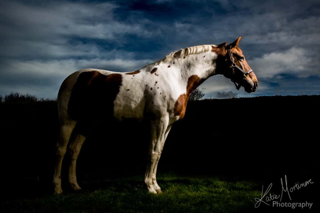 I start by desensitising my subject to the light at a lower power before cracking on with producing some portraits. I discussed desensitising horses in an earlier blog. I often work with a number of different positions and angles to create a range of dynamic and dramatic portraits where possible. I use a selection of different ‘modifiers’ to control the light both the direction and strength, from a plain plastic diffuser to shaped light boxes.