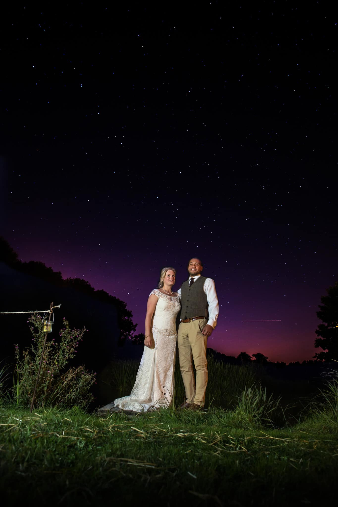 The theme was a vintage rustic feel and mirrored Emma and Tris’ relaxed nature, with straw bales acting as seating outside with log burners it turned into a beautifully relaxed and charming day. Food was plentiful and varied for the guests who had all manner of choices including hog roast, pizza, pasta, paella and more from the street food styled vendors outside. The weather was incredibly co-operative with beautiful sunshine throughout the day and into the evening. I stayed on into the evening past the cake cutting (that was made by Emma’s sister) and first dance in order to take advantage of the clear skies and new moon and therefore stars. It was amazing to be able to combine a number of my photographic loves and this photo of them is one of my favourites from the day.