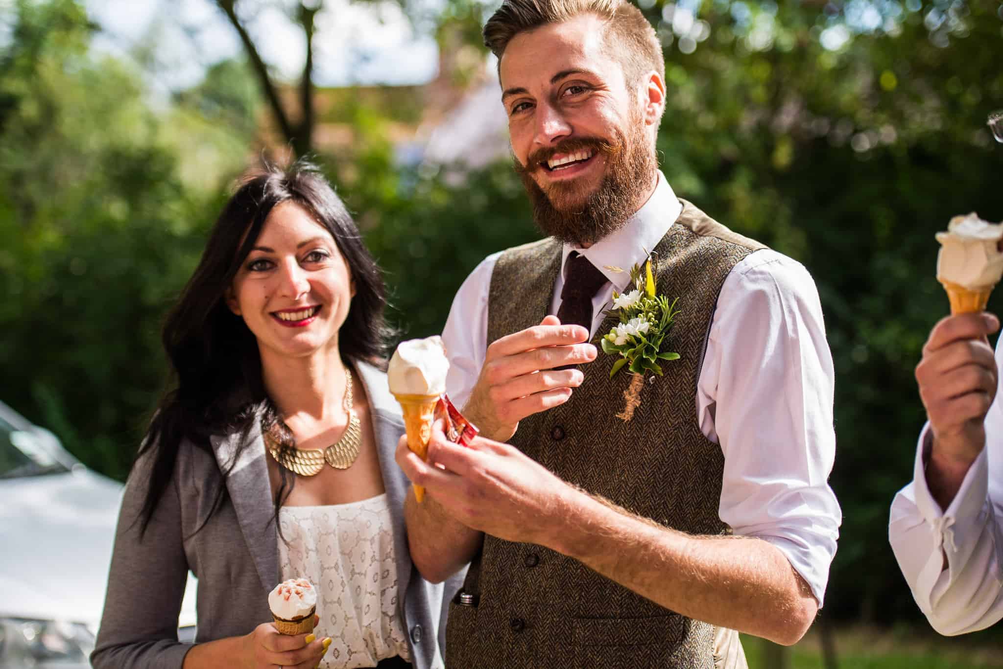 The service was held at Kimpton Church. This beautiful small village church, only accessible by a grassy pedestrian track from the road, was the perfect start to the day. After the service it was time for ice cream! A van parked on the village green serving out Mr Whippy cones to the guests, it really was a lovely touch. Whilst this took place Emma also had chance to involve her two lovely horses for some photos. They had both been plaited and shined to perfection with ribbons in their manes.